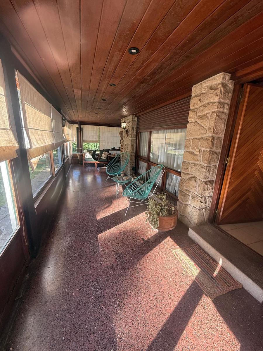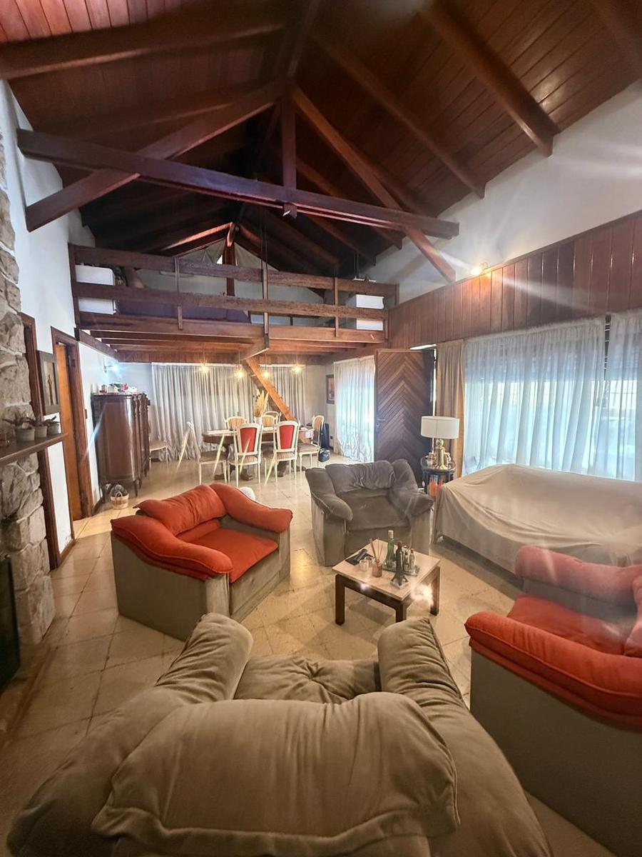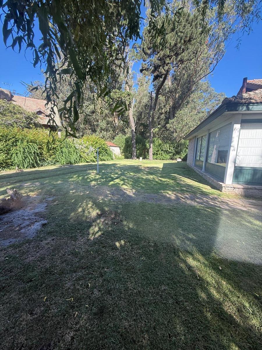 Chalet 4 ambientes - sobre 2 lotes Ubicado sobe calle principal del bosque Cuenta con amplio living comedor con techos altos de madera, con ventanales al frente - Entrepiso con balcón a living comedor Cocina comedor separada amplia con ventanal al parque Baño completo tres habitaciones en planta bajaGarage para un auto y trotadoraGalería amplia con dos toilettes Parque Sobre 2 lotes 480 m2 / 455 m2Edificado 234 mts2Nota: las medidas expresadas en mts y mts2 son aproximadas.