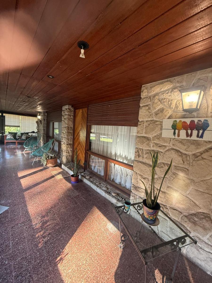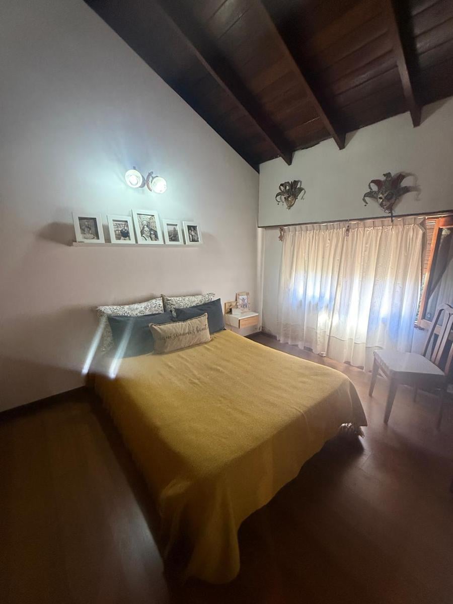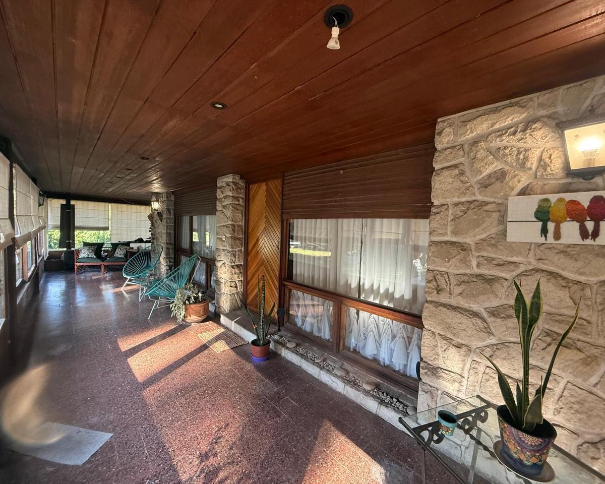 Chalet 4 ambientes - sobre 2 lotes Ubicado sobe calle principal del bosque Cuenta con amplio living comedor con techos altos de madera, con ventanales al frente - Entrepiso con balcón a living comedor Cocina comedor separada amplia con ventanal al parque Baño completo tres habitaciones en planta bajaGarage para un auto y trotadoraGalería amplia con dos toilettes Parque Sobre 2 lotes 480 m2 / 455 m2Edificado 234 mts2Nota: las medidas expresadas en mts y mts2 son aproximadas.