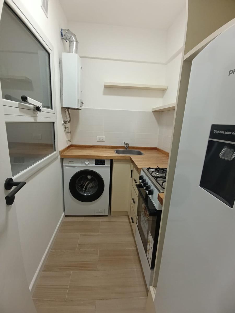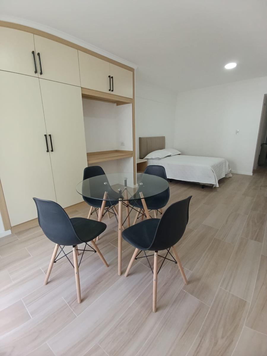Ambiente de gran tamaño con amplio patio.El ambiente es en concepto desplazado (dividido) al lateral. Se encuentra reciclado Ambiente dividido con amplio ventanal de piso a techo súper luminoso, cama sommier a estrenar de dos plazas, resplado de cama con mesas de luz incorporadas, mesa con 4 sillas a estrenar, rack con TV Smart 32 pulgadas nuevo, aire acondicionado frio calor, plantas, perchero de pie, cortinas, acolchado y decoración.Caja fuerte.PERSIANA ELÉCTRICA.REFACCIONADO. ( se cambiaron cañerías de cocina y baño). Obra de gas hecha en el edificio. Al departamento se le bajaron los techos (COCINA Y BAÑO). Cocina separada con lavadero (equipada con lavarropas a estrenar marca Philips, heladera con freezer nueva marca Philips, microondas nuevo marca Atma, pava eléctrica marca Atma nueva, tostadora nueva marca Atma, cocina semi industrial marca Escorial nueva, extractor TSC nuevo). BODEGA CON VINOS, vajilla, cubiertos tipo hotel, utensilios de cocina Hudson, cafetera estilo italiana Hudson, cacerola Hudson, sarten Hudson, cuchilla Hudson. SUPER COMPLETO.Cortinado a estrenar. (COCINA Y AMBIENTE). SE ENTREGA CON VAJILLA PARA DOS PERSONAS, SÁBANAS Y TOALLAS. (NO LE FALTA NADA. LISTO PARA HABITAR O ALQUILAR).Baño completo con mampara, inodoro y bidet Ferrum línea Bari, vanitory madera blanca laqueado, griferia Piaza, secador de pelo (tipo hotel) y todo el equipamiento de baño.PATIO, detalles en madera, mobiliario, iluminación solar, salida de agua nueva y gas (para futura parrila gas).VALOR: U$S 68.900Mts 24 cubiertos aprox.Mts 19 descubiertos aprox.Total aprox. 43. MtsExpensas $ 110.000 aprox.Nota: las medidas expresadas en mts y mts2 son aproximadas.