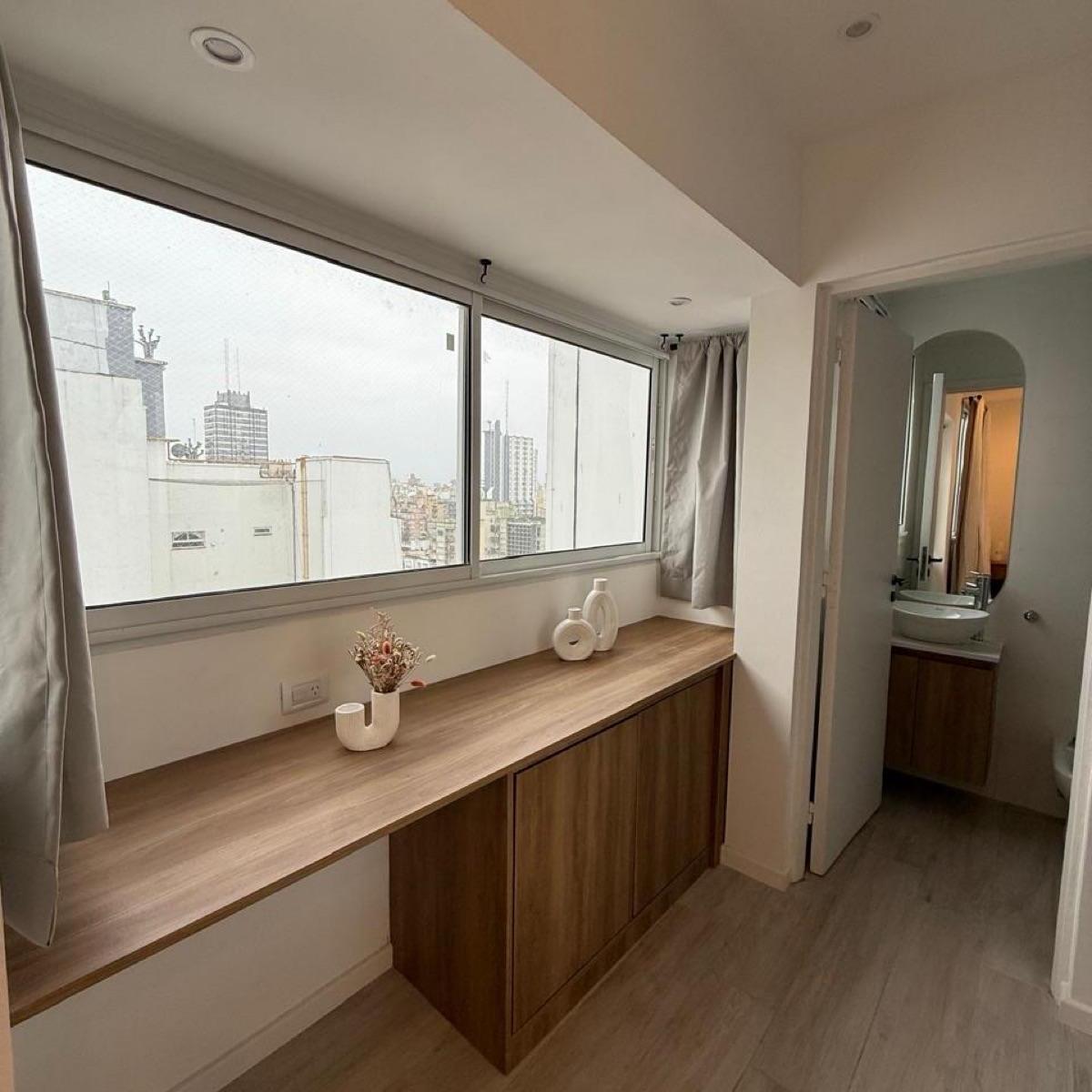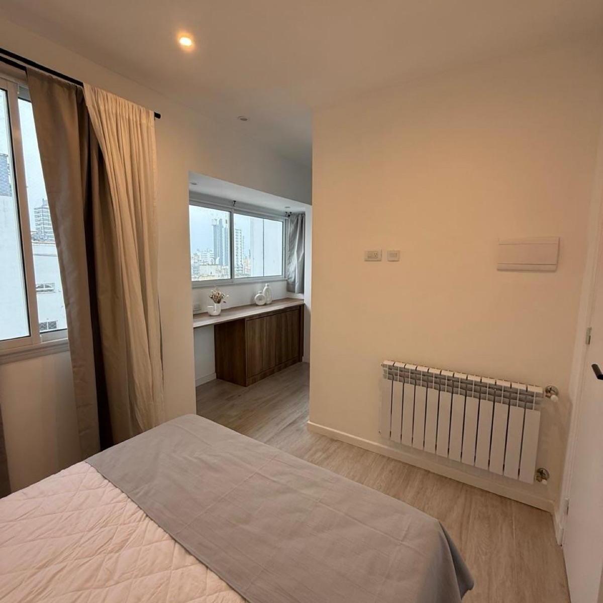 Departamento 3 ambientes a la calle con balcón Amplio living con balcón saliente y vista panorámica de la ciudad y vista lateral al marCocina de generosos dimensiones totalmente equipada con comedor integrado Máster suite con vestidor, escritorio y baño privado Segundo dormitorio con placard y muy luminosoBaño completoEl departamento se encuentra totalmente reciclado a nuevo y cuenta con planos de todo el trabajoSistema de calefacción por radiadoresSe entrega totalmente amoblado y decoradonota las medidas expresadas en mts y mts2 son aproximadas
