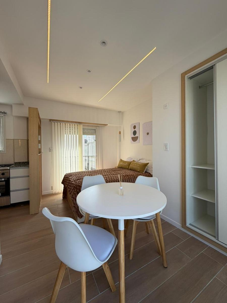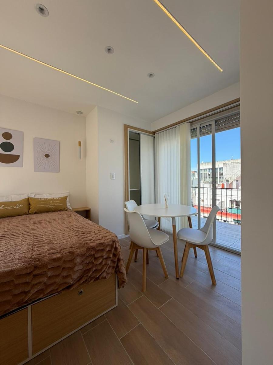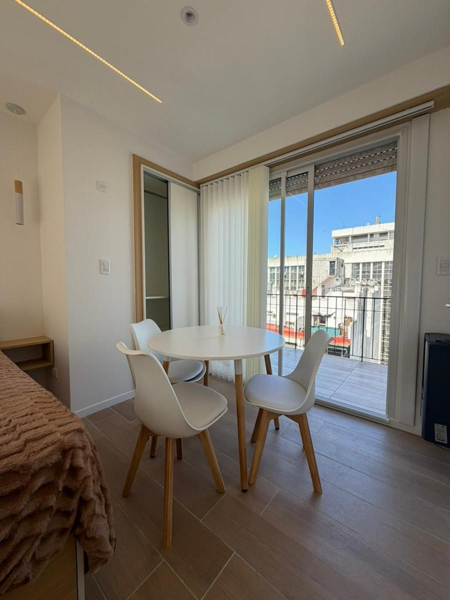 Departamento 1 ambientes a la calle con balcón terraza.Cocina integrada con ventilación naturalBaño completoCalefacción por tiro balanceadoEl departamento se entrega totalmente amoblado y decorado, listo para habitar o invertir.Nota: las medidas expresadas en mts y mts2 son aproximadas .
