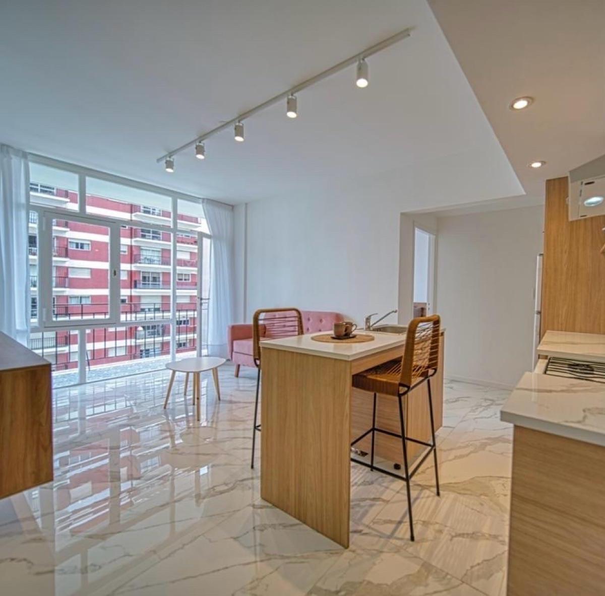 Departamento 3 ambientes con balcón corrido Este moderno departamento de 3 ambientes, con 47 M2, ubicado en Santiago del Estero al 1500, con frente a la Av. Luro, combina diseño, ubicación y luminosidad en un solo lugar.A metros del mar y de los principales puntos de la ciudad, la propiedad fue totalmente remodelada y amoblada.El ambiente principal cuenta con cocina integrada e isla con banquetas, heladera, cocina a gas, alacena y bajo mesada, sillón con mesa ratona, ruck tv, mesita recibidora, lavarropas y baño moderno con box de ducha y media mampara.Dormitorio principal con salida al balcón, equipado con sommier 2 plazas y amplio placard empotrado. Mano de obra y materiales utilizados son de primera calidad.Cuenta con un amplio balcón corrido que abarca todo el frente, ideal para disfrutar del sol y las vistas abiertas.Cada ambiente recibe luz natural, creando una atmósfera moderna, cómoda y súper luminosa.Perfecto para quienes buscan vivir o invertir en una de las zonas más emblemáticas de Mar del Plata.Si estas listo/a para mudarte, solo es cuestión de armar las maletas. contactanos!!APTO CRÉDITONota: las medidas expresadas en mts y mts2 con aproximadas.