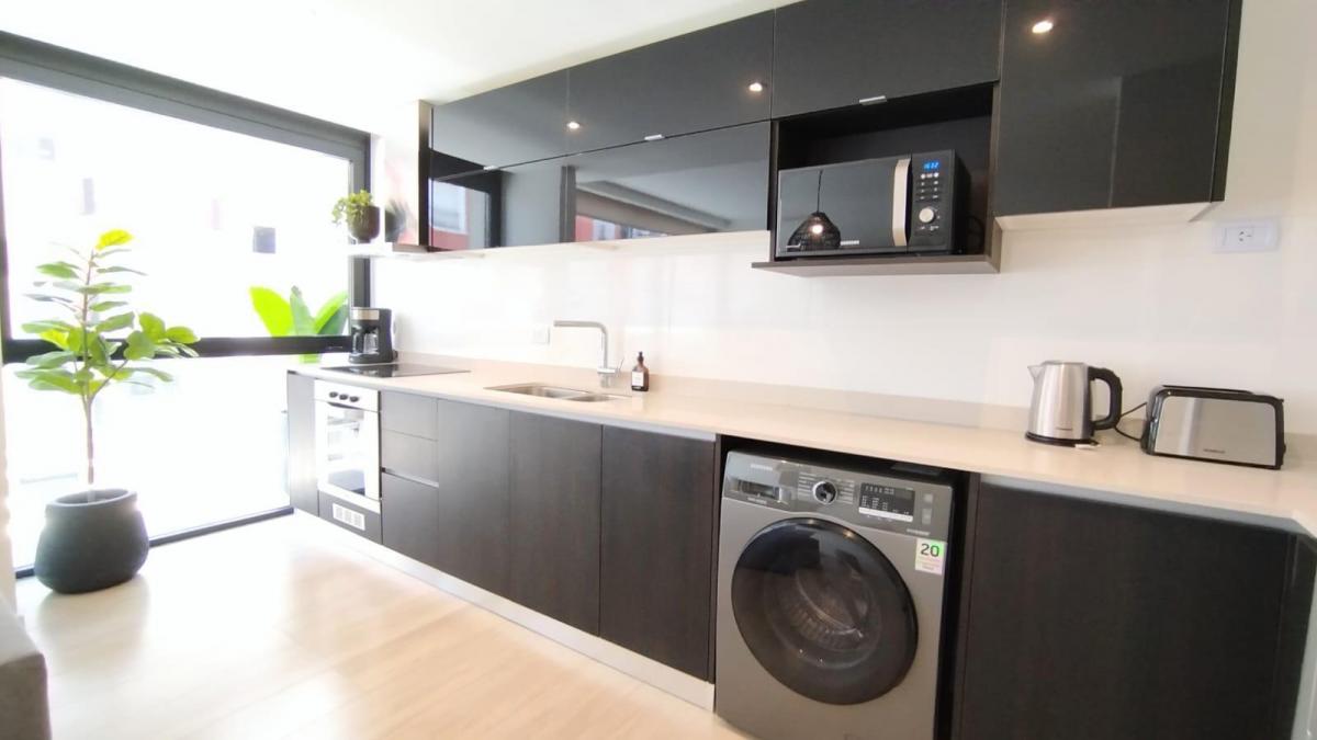 Departamento 2 ambientes a la calle a estrenarMoreno 2100Edificio NoveccentoLa unidad cuenta con un estar comedor a la calle con balcón corridoCocina integrada con espacio para lavarropas - Totalemente equipadaToiletteDormitorio en suite a la calle con salida al balcónSe entrega amoblado y decoradoAire acondicionado en cada ambienteTotalmente equipado preparado para alquiler temporarioSup. 64 mtsExpensas: $ 110.000Valor $ 140.000Nota: las medidas expresadas en mts y mts2 son aproximadas.
