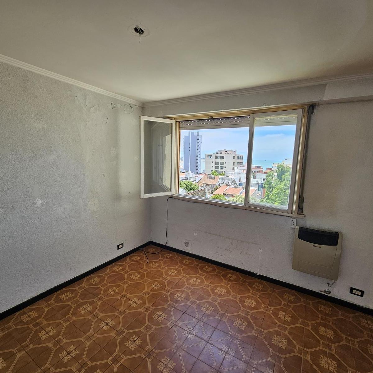 Venta departamento 2 ambientes con dependencia y vista lateral al mar. Ubicado en barrio La Perla, a pocos metros del mar. Sobre calle Santa Fe entre 9 de Julio y 3 de Febrero. 7mo piso al lateral con excelente vista al mar y una superficie de 43 mts2 totales. Cuenta con living comedor muy luminoso con pisos cerámicos, cocina separada con ventilación natural y calefón, dependencia de servicio, baño completo con bañera y dormitorio con parquet y placard empotrado.Se encuentra en estado original y actualmente no cuenta con servicio de gas.Edificio con terraza y vista al mar.Consulte.Nota: las medidas expresadas en mts y mts2 son en todos los casos aproximadas.-