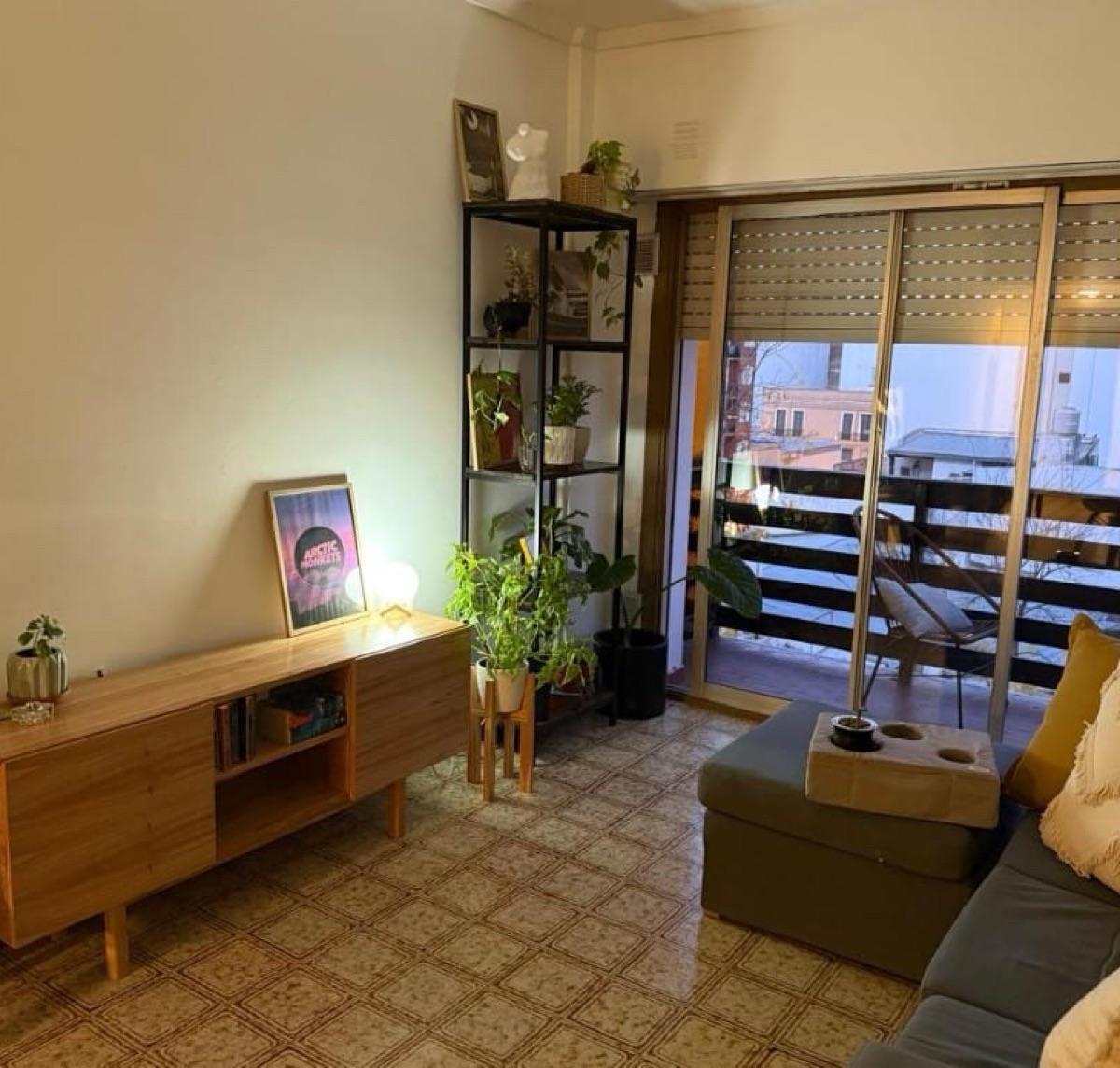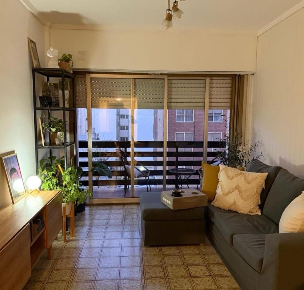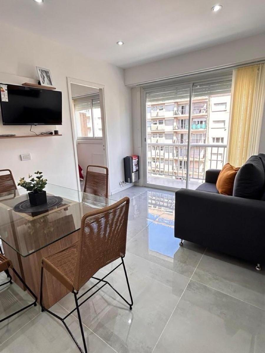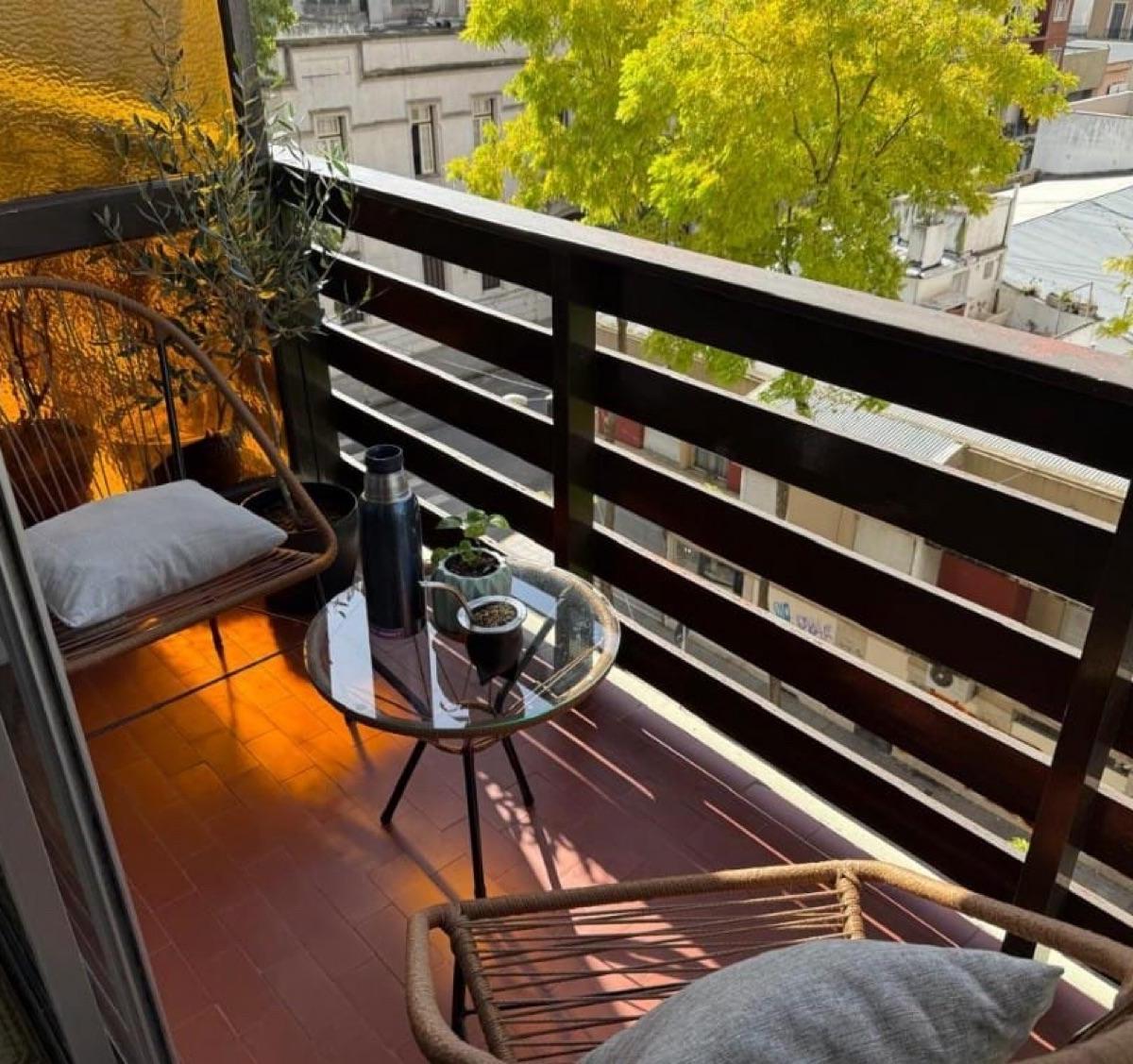 Ambiente de gran tamaño con amplio patio.El ambiente es en concepto desplazado (dividido) al lateral. Se encuentra reciclado Ambiente dividido con amplio ventanal de piso a techo súper luminoso, cama sommier a estrenar de dos plazas, resplado de cama con mesas de luz incorporadas, mesa con 4 sillas a estrenar, rack con TV Smart 32 pulgadas nuevo, aire acondicionado frio calor, plantas, perchero de pie, cortinas, acolchado y decoración.Caja fuerte.PERSIANA ELÉCTRICA.REFACCIONADO. ( se cambiaron cañerías de cocina y baño). Obra de gas hecha en el edificio. Al departamento se le bajaron los techos (COCINA Y BAÑO). Cocina separada con lavadero (equipada con lavarropas a estrenar marca Philips, heladera con freezer nueva marca Philips, microondas nuevo marca Atma, pava eléctrica marca Atma nueva, tostadora nueva marca Atma, cocina semi industrial marca Escorial nueva, extractor TSC nuevo). BODEGA CON VINOS, vajilla, cubiertos tipo hotel, utensilios de cocina Hudson, cafetera estilo italiana Hudson, cacerola Hudson, sarten Hudson, cuchilla Hudson. SUPER COMPLETO.Cortinado a estrenar. (COCINA Y AMBIENTE). SE ENTREGA CON VAJILLA PARA DOS PERSONAS, SÁBANAS Y TOALLAS. (NO LE FALTA NADA. LISTO PARA HABITAR O ALQUILAR).Baño completo con mampara, inodoro y bidet Ferrum línea Bari, vanitory madera blanca laqueado, griferia Piaza, secador de pelo (tipo hotel) y todo el equipamiento de baño.PATIO, detalles en madera, mobiliario, iluminación solar, salida de agua nueva y gas (para futura parrila gas).VALOR: U$S 68.900Mts 24 cubiertos aprox.Mts 19 descubiertos aprox.Total aprox. 43. MtsExpensas $ 110.000 aprox.Nota: las medidas expresadas en mts y mts2 son aproximadas.